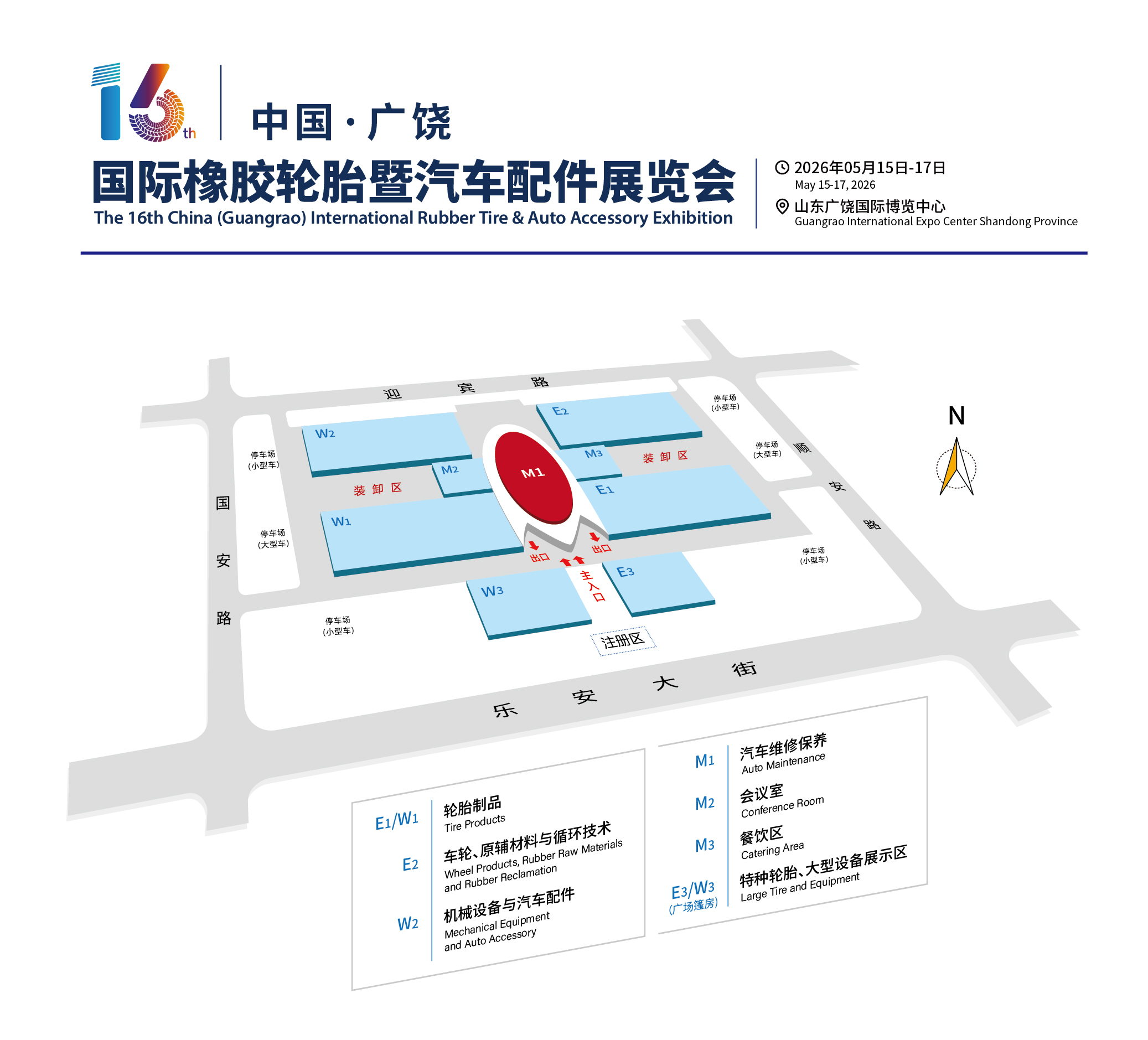 第十六届轮胎展计划于2026年5月15日-17日在广饶国际博览中心举办。预计展出面积超5.5万平方米,参展企业800余家,到会专业采购商超15万人次。